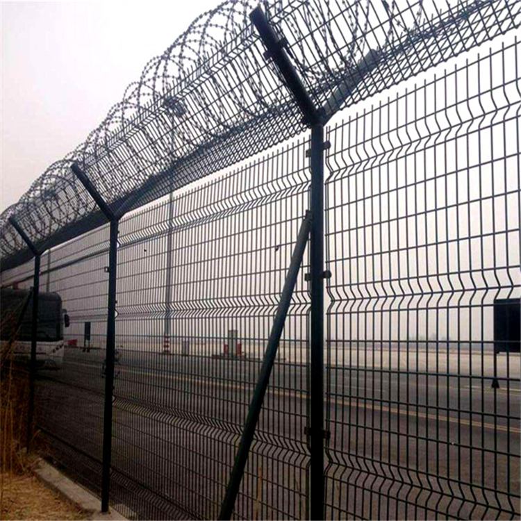 普及機場圍欄網(wǎng)的國際標準:圍界網(wǎng)片及V型網(wǎng)的網(wǎng)孔其相鄰橫絲間距不得大于10cm,豎絲間距不得大于5cm,機場圍界網(wǎng)片與立柱之間的縫隙不得大于2mm,網(wǎng)片離地間距不得大于2cm。焊接圍界網(wǎng)片的鋼絲直徑必須大于等于5mm。機場圍界的立柱應(yīng)采用60*60mm方管制成,管壁厚度不得低于2mm,立柱及網(wǎng)片的表面防腐年限不能低于8年。機場圍界網(wǎng)頂部安裝的刀片刺網(wǎng)直徑要大于600mm,刺圈間距20-25cm。機場鋼筋圍界網(wǎng)的立柱基礎(chǔ)應(yīng)采用現(xiàn)澆混凝土制成,截面500*500mm,高度800mm。